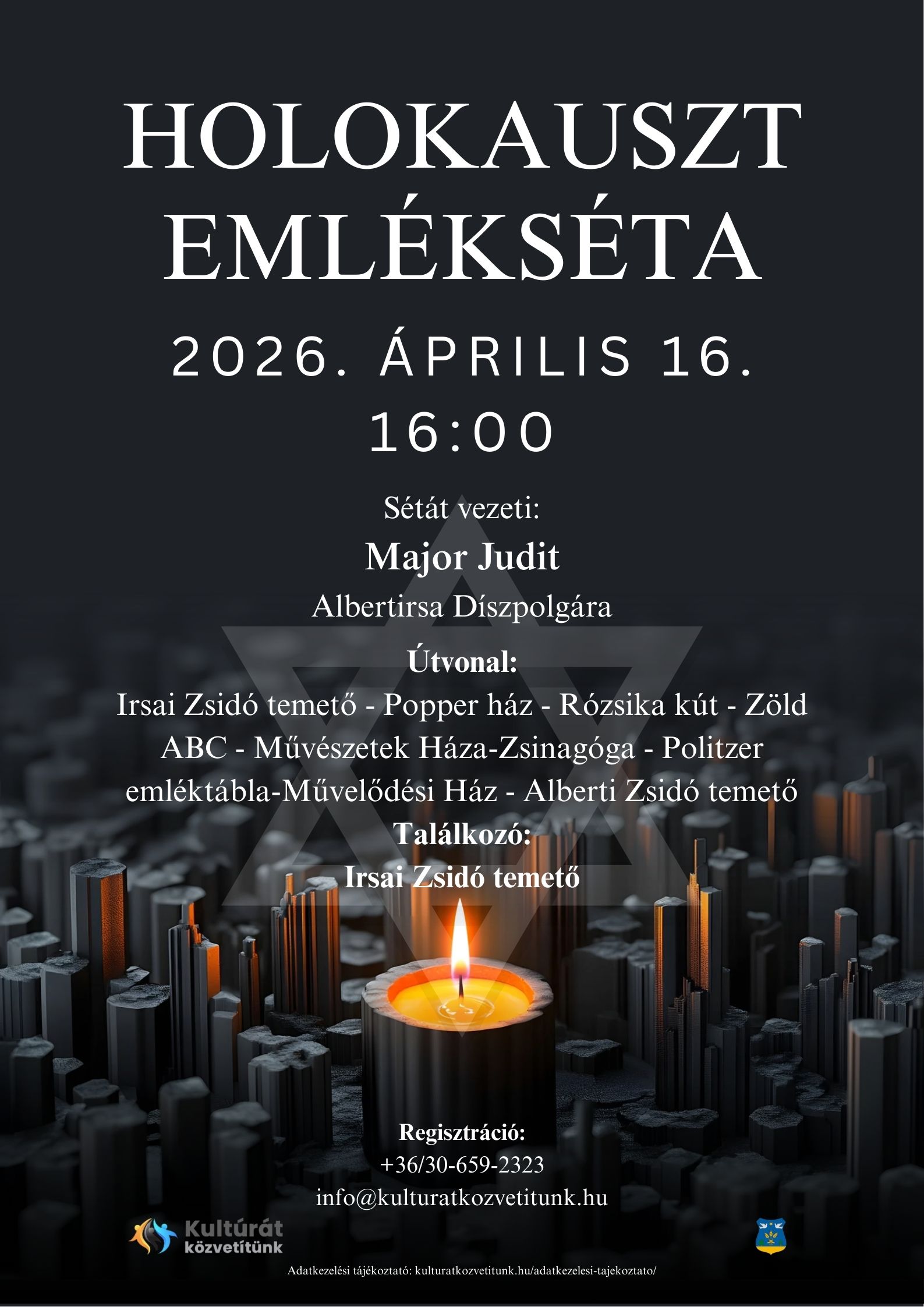 Szeretettel hívunk és várunk mindenkit 2026. április 16-án a 16 órakor kezdődő Holokauszt Emléksétára!